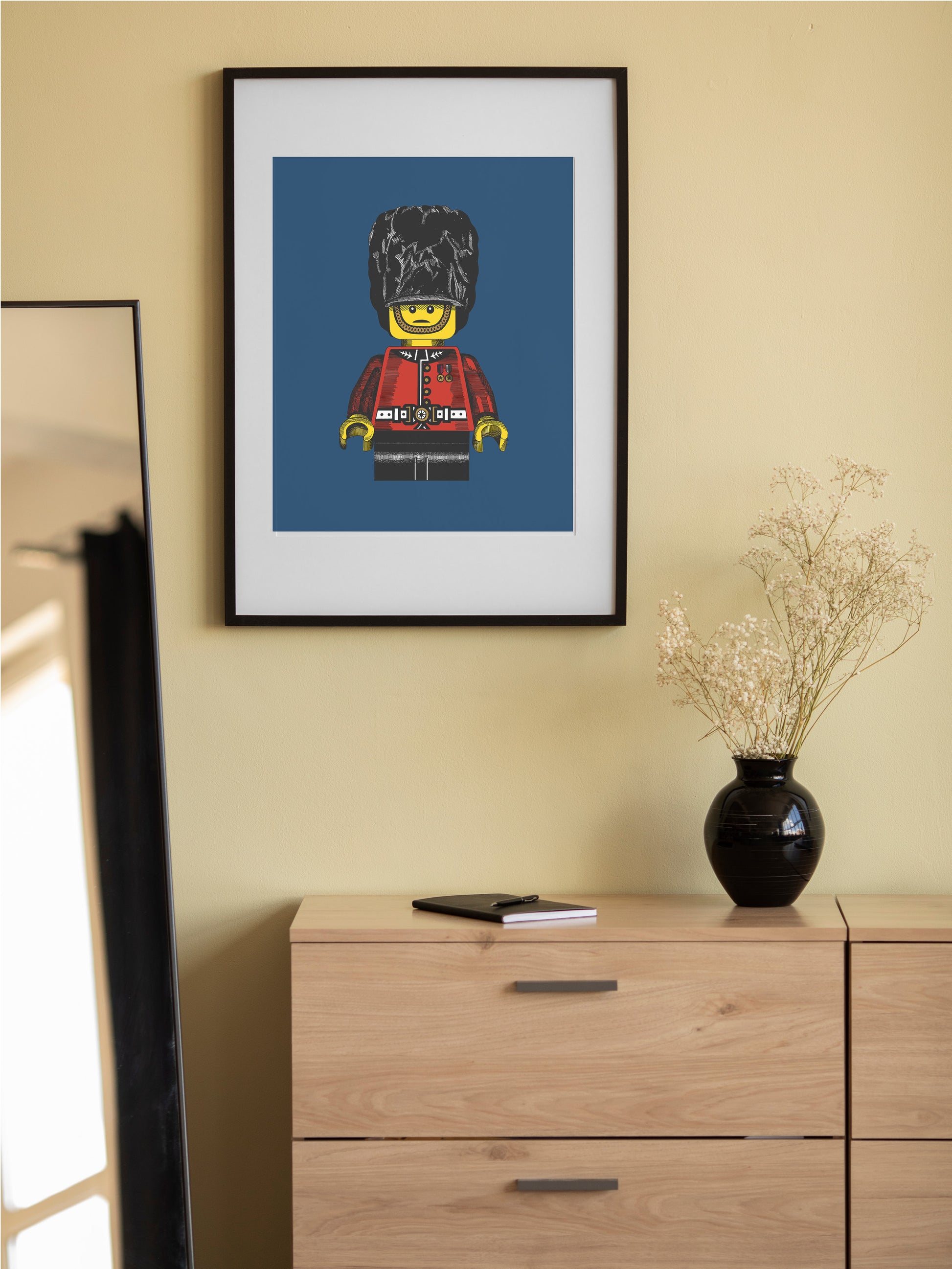 Introducing our nod to the Kings Guard Glicee Fine Art Print Illustration! Own a unique and quirky piece of art that features your favourite Lego figure. Perfect for any Lego enthusiast or collector.